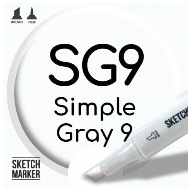 Купить Двусторонний заправляемый маркер SKETCHMARKER на спиртовой основе для скетчинга, цвет: SG9 Простой серый 9