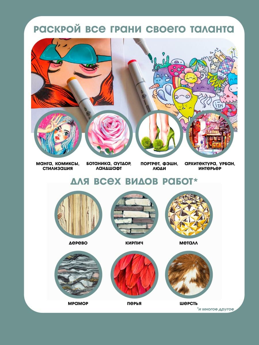 СохранитьДвусторонний заправляемый маркер SKETCHMARKER на спиртовой основе для скетчинга, цвет: CG6 Прохладный серый 6 интересное: