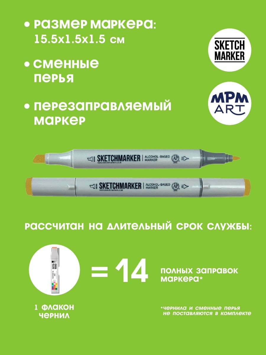 СохранитьДвусторонний заправляемый маркер SKETCHMARKER на спиртовой основе для скетчинга, цвет: Y102 Орешник интересное:
