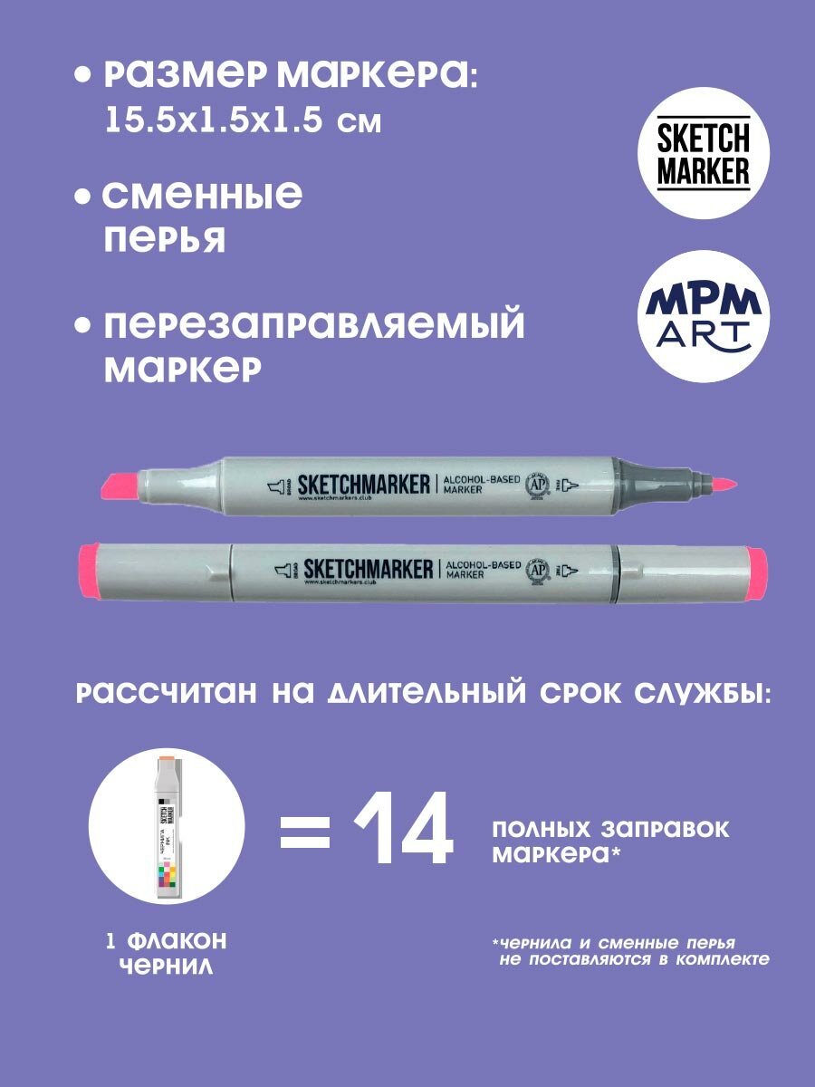 СохранитьДвусторонний заправляемый маркер SKETCHMARKER на спиртовой основе для скетчинга, цвет: R42 Цикламен интересное: