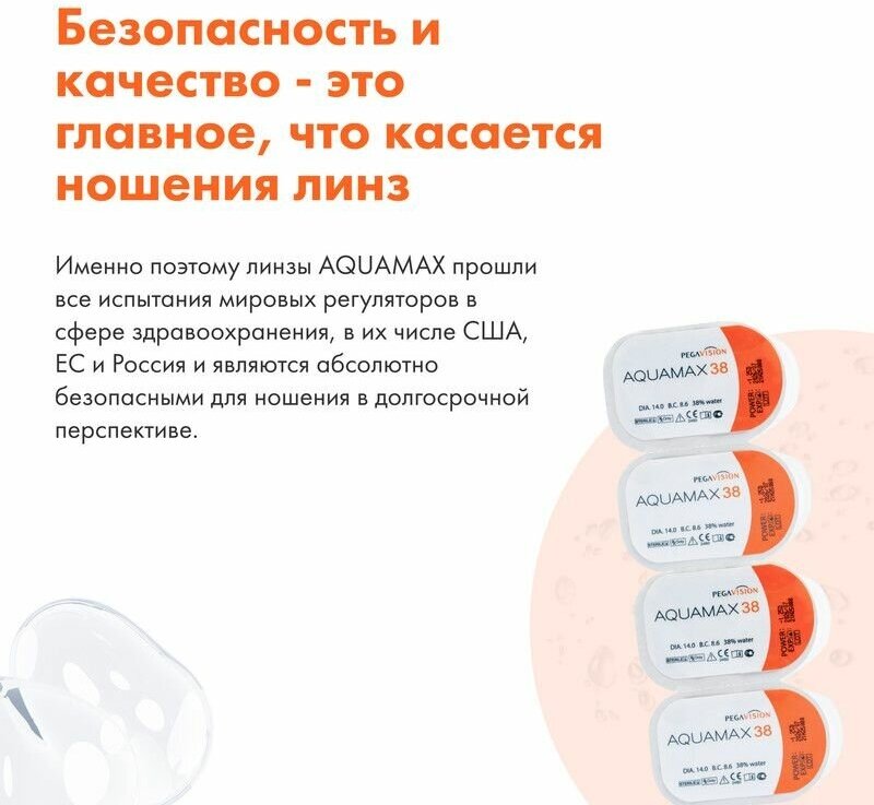 Контактные линзы Pegavision Aquamax 38, 4 pk, R 8,6, D -6.50