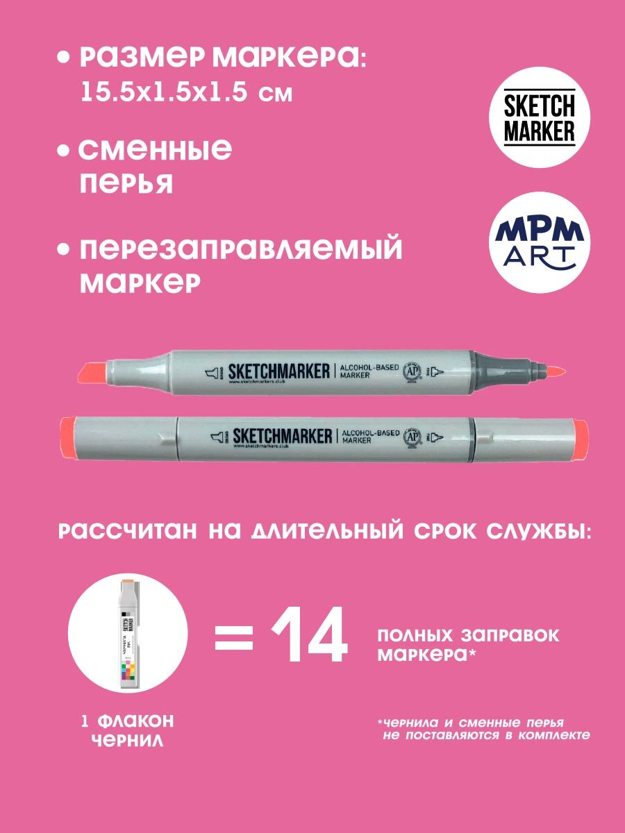 Двусторонний заправляемый маркер SKETCHMARKER на спиртовой основе для скетчинга, цвет: R24 Детский розовый