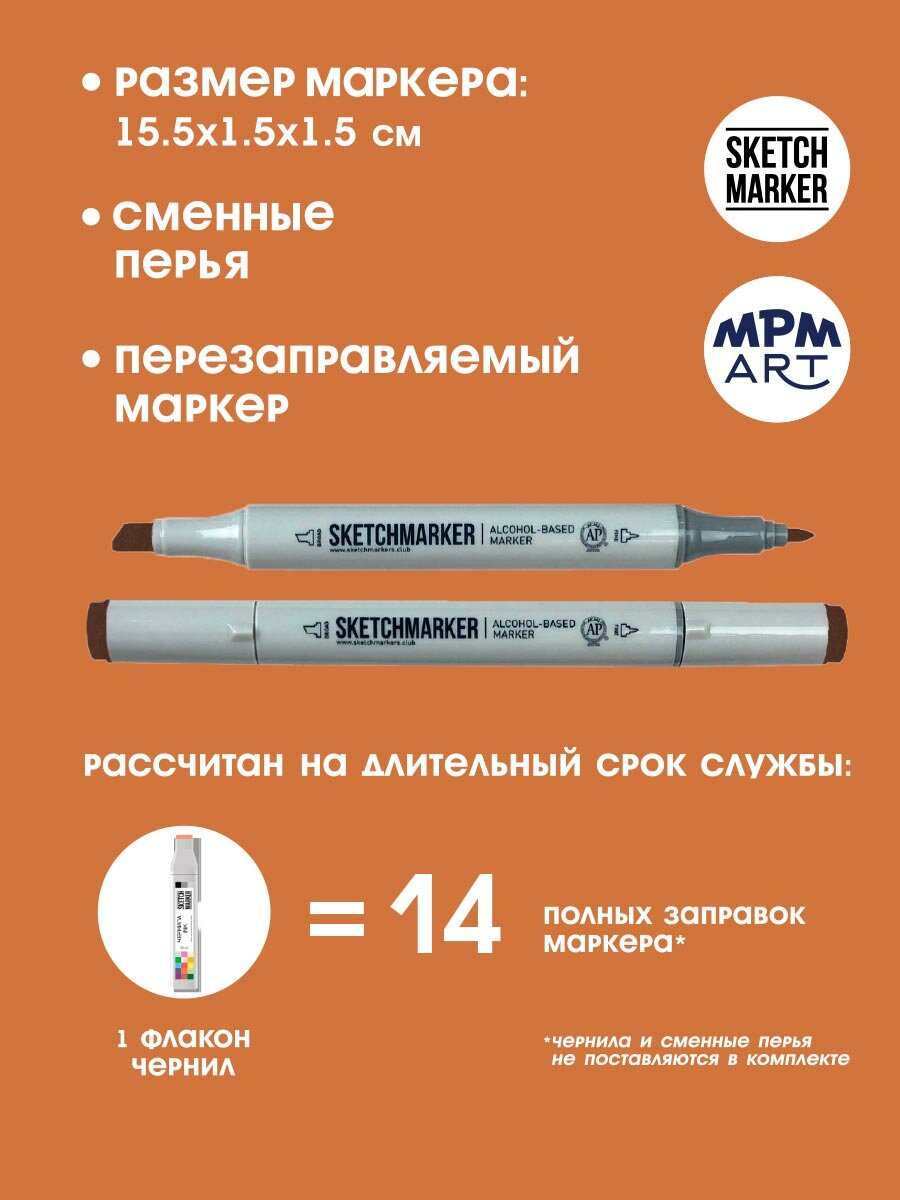 Двусторонний заправляемый маркер SKETCHMARKER на спиртовой основе для скетчинга, цвет: BR31 Коричневая хна