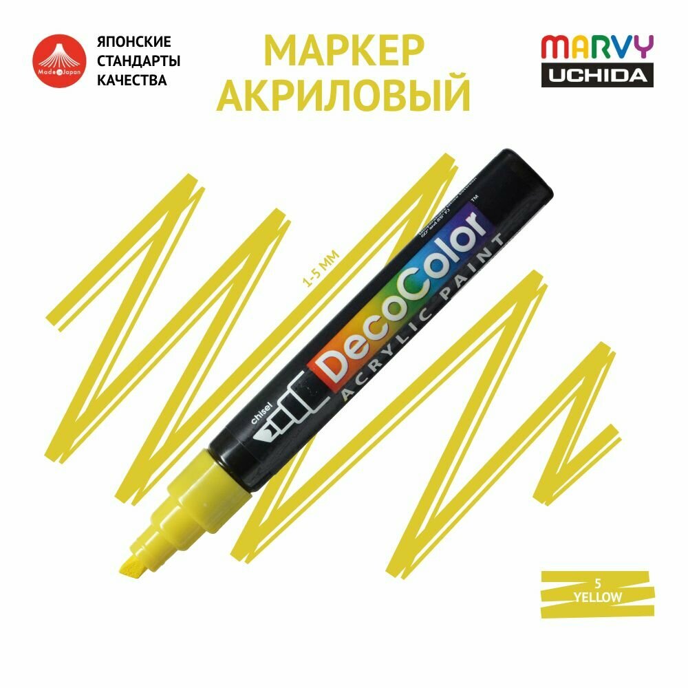 Купить Акриловый маркер Marvy Uchida для любых поверхностей перманентный, скошенный наконечник 1-5мм Желтый (YELLOW) MAR315/5