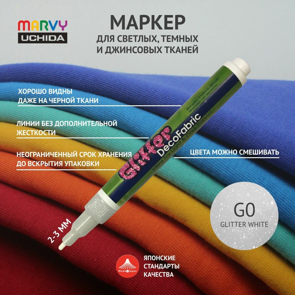 Купить Маркер для ткани Marvy Uchida для рисования и декора на светлой, темной и джинсовой ткани 2-3мм, GLITTER WHITE Белый с блестками MAR222/G0
