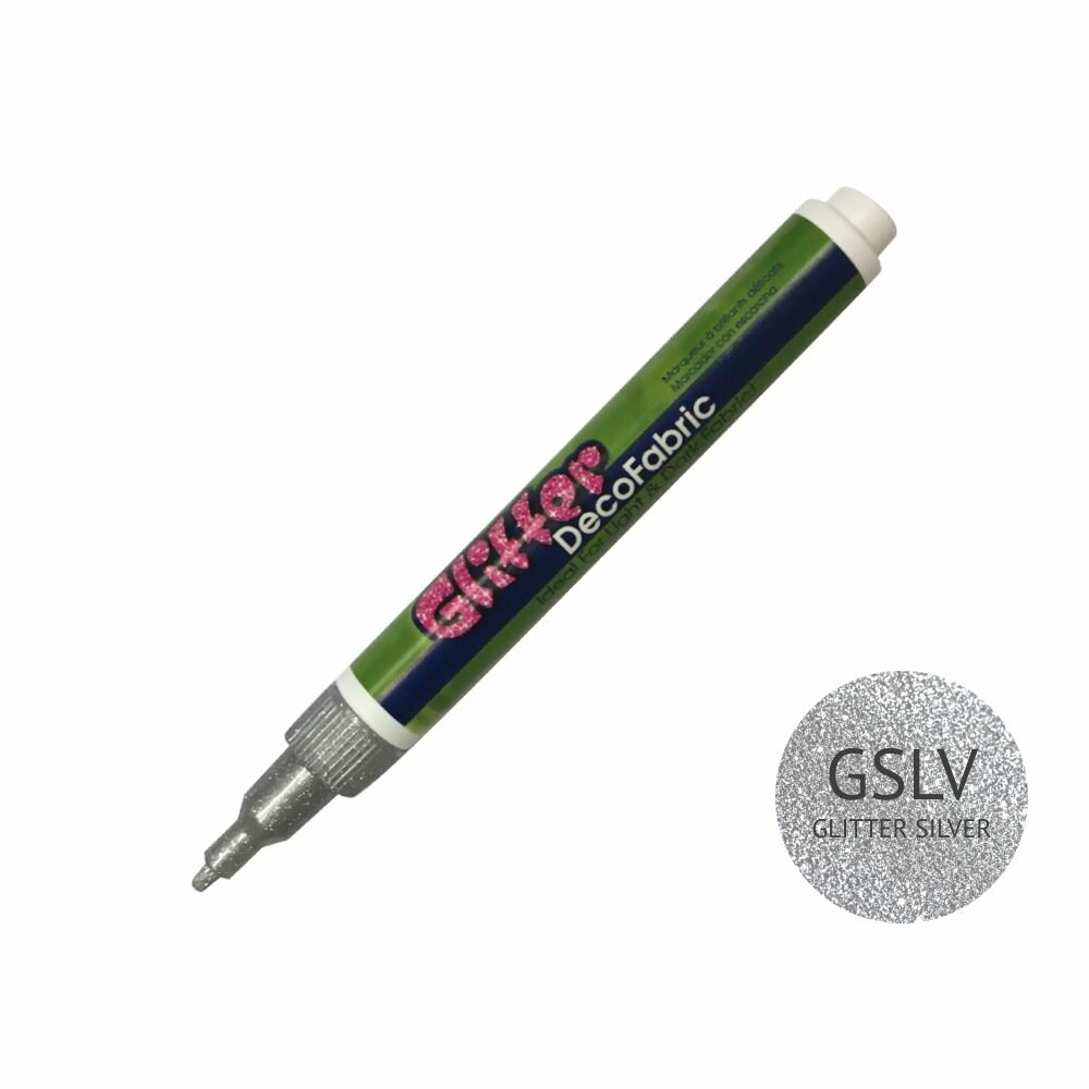 Купить Маркер для ткани Marvy Uchida для рисования и декора на светлой, темной и джинсовой ткани 2-3мм, GLITTER SILVER Серебряный с блестками MAR222/GSLV