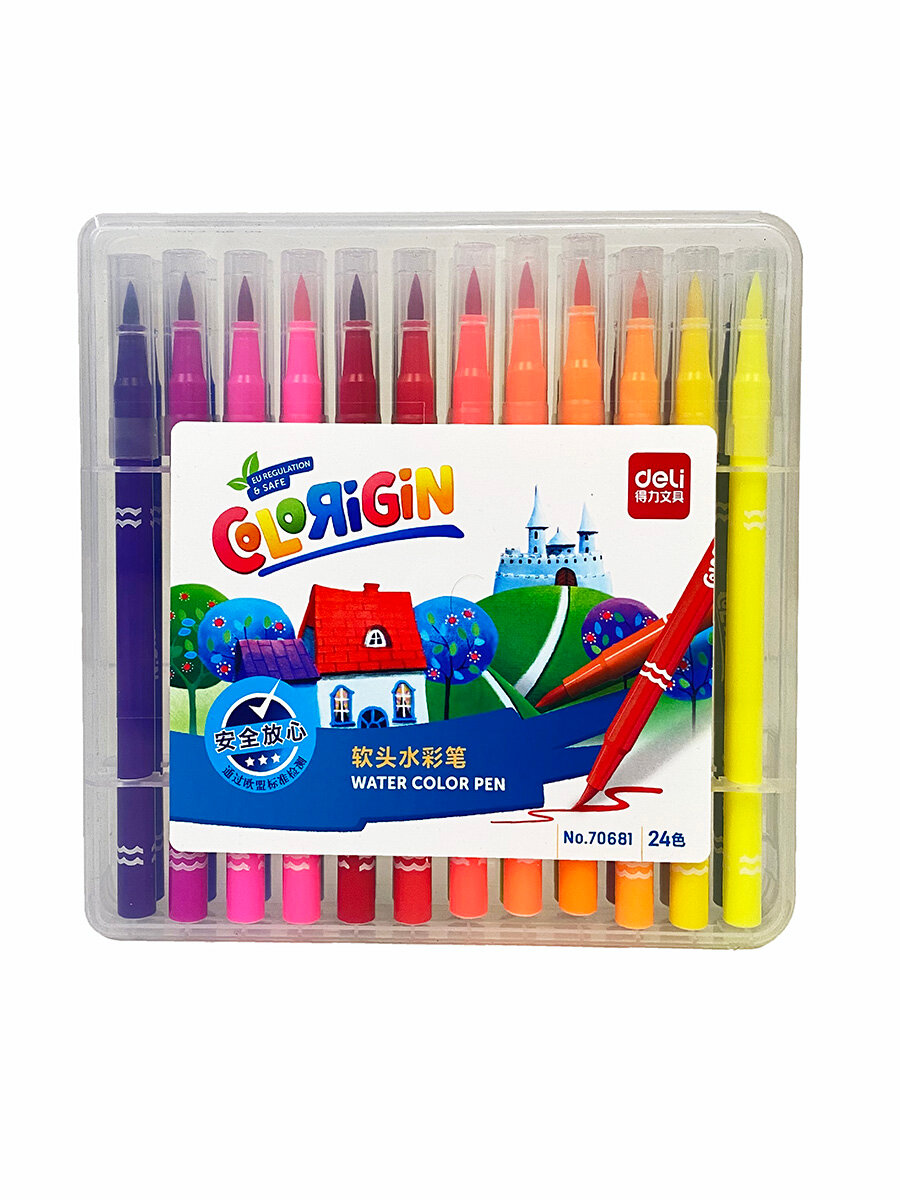 Купить Фломастеры - кисточки Deli "COLORIGIN" 24 цв. на водной основе, пластиковый пенал, Арт. 70681
