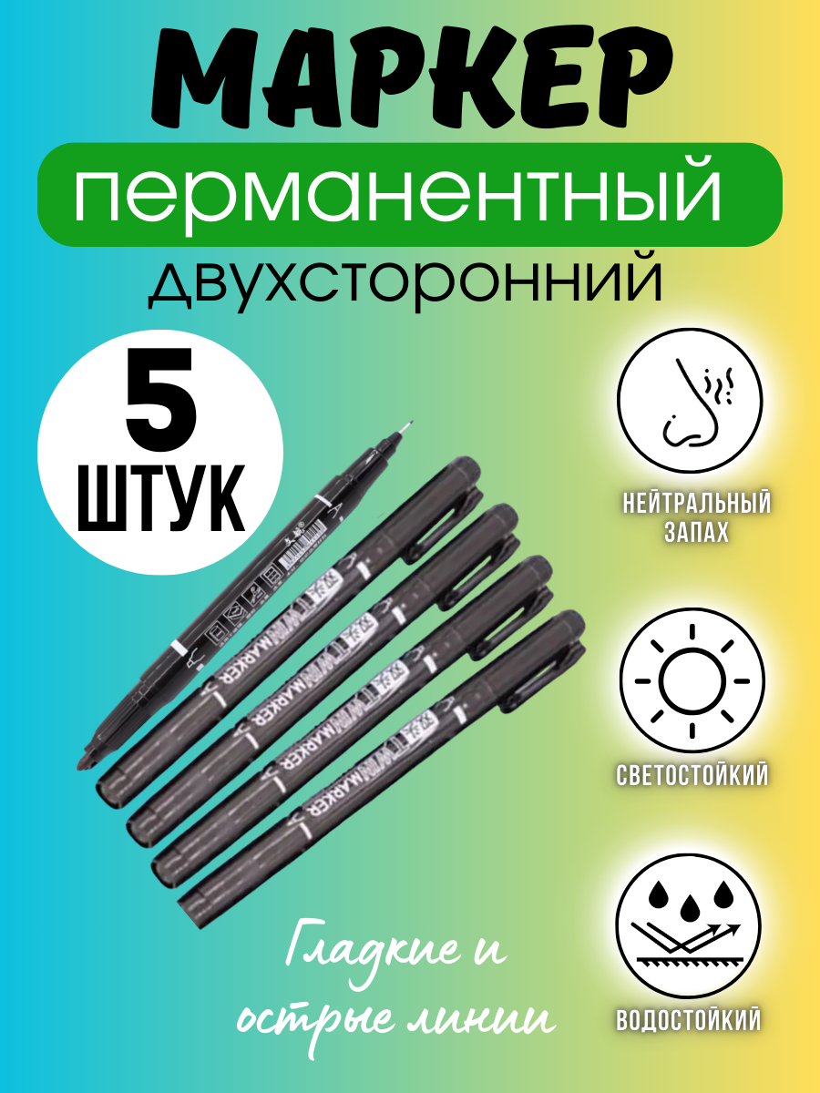 Маркер двухсторонний перманентный 5шт интересное: