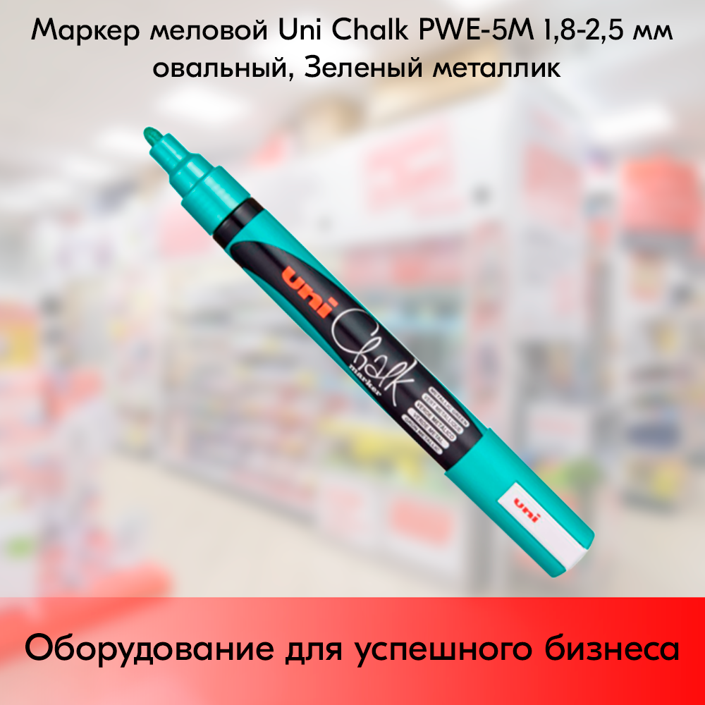 Купить Маркер меловой Uni Chalk PWE-5M 1,8-2,5 мм овальный, Зеленый металлик