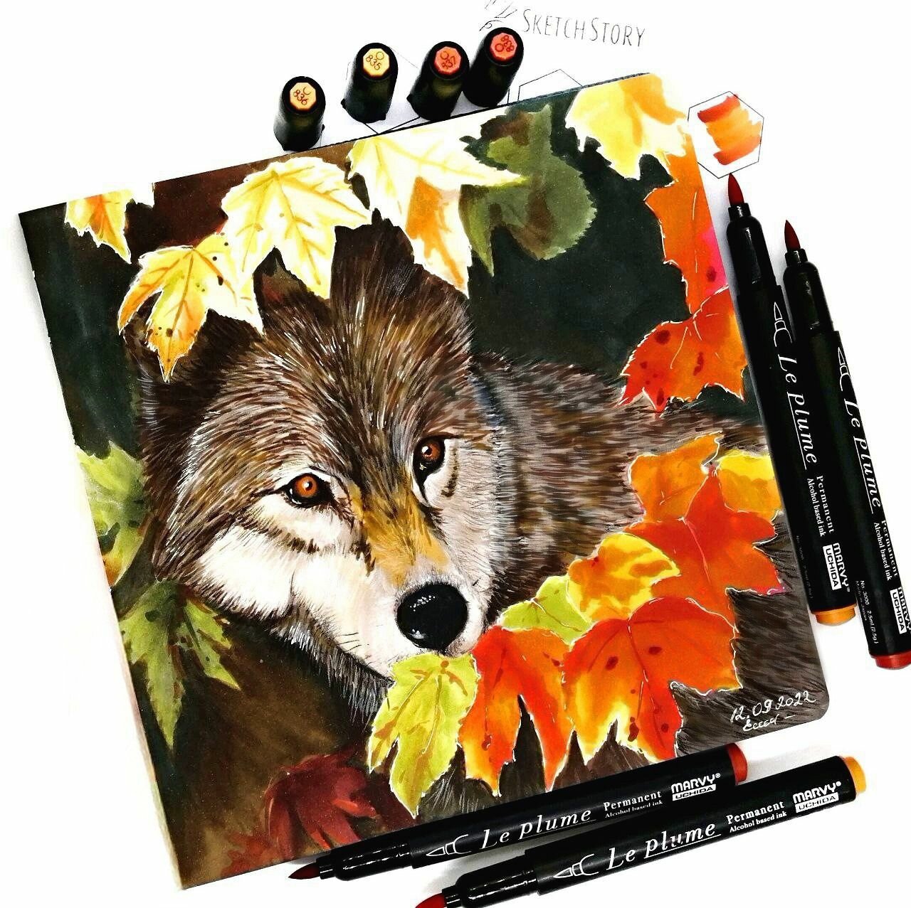 Маркер-кисть для скетчинга спиртовой Marvy Uchida цвет осенней листвы MAR3000/E865