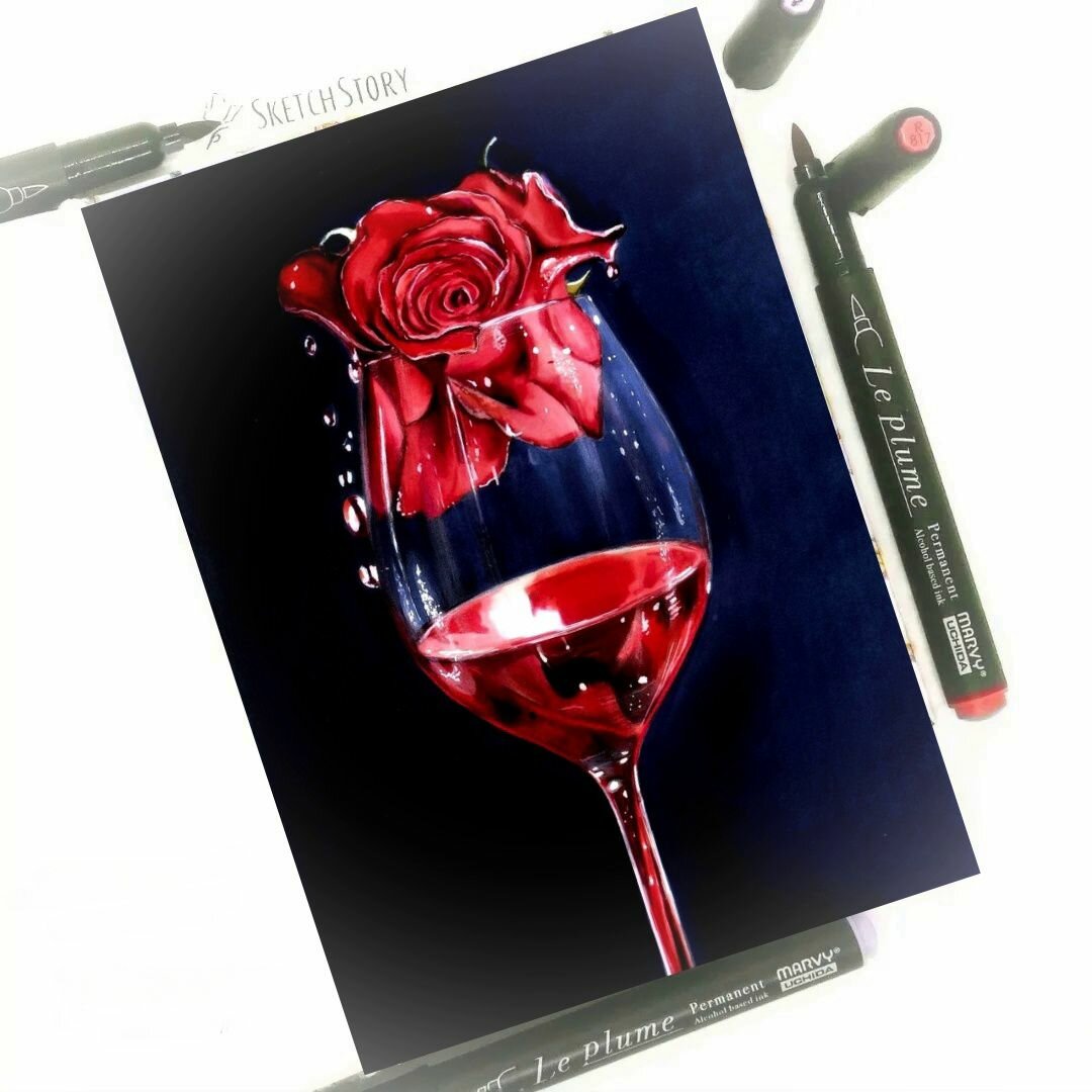 Маркер кисть MARVY 3000_R805 перманентный (красные) FRENCH ROSE французская роза, 1шт.
