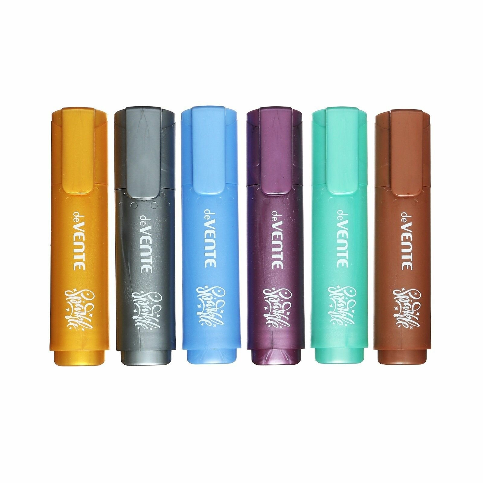 Набор маркеров текстовыделителей 6 цветов, 5.0, deVENTE Sparkle METALLIC, с блестками, скошенные интересное:
