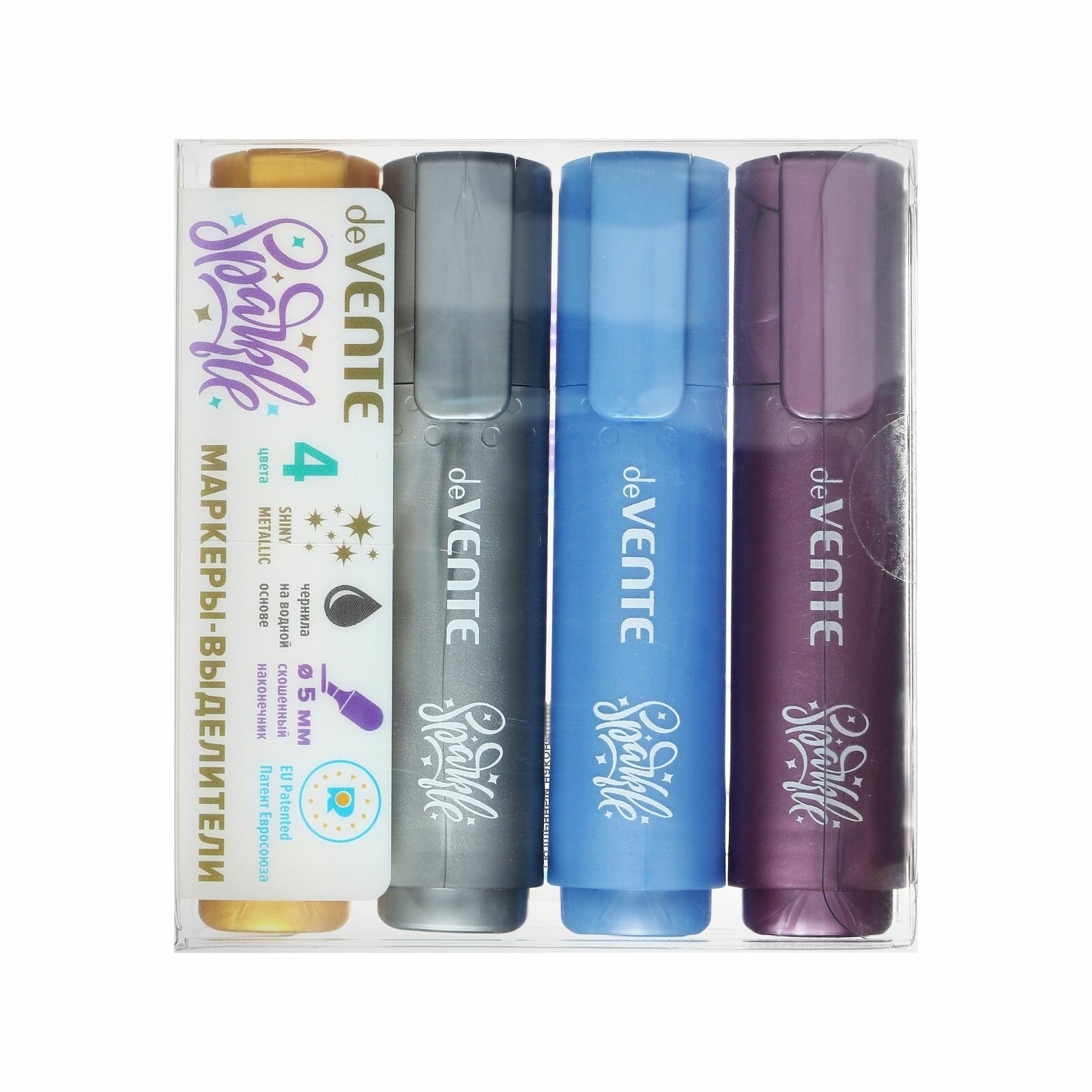 Набор маркеров текстовыделителей 4 цвета, 5.0, deVENTE Sparkle METALLIC, с блестками, скошенные интересное: