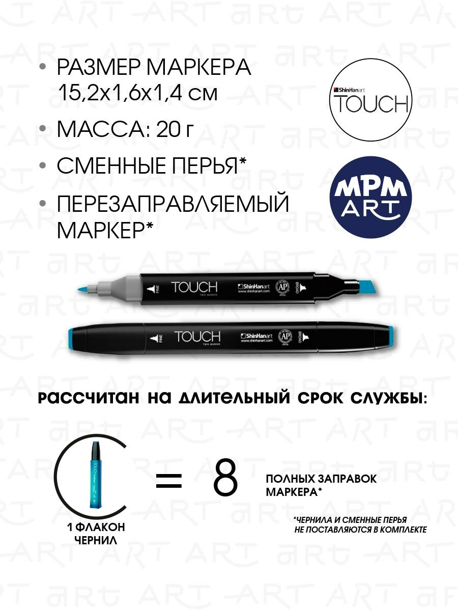 СохранитьДвусторонний заправляемый маркер ShinHan TOUCH TWIN на спиртовой основе для скетчинга, цвет: B261 Голубой основной интересное: