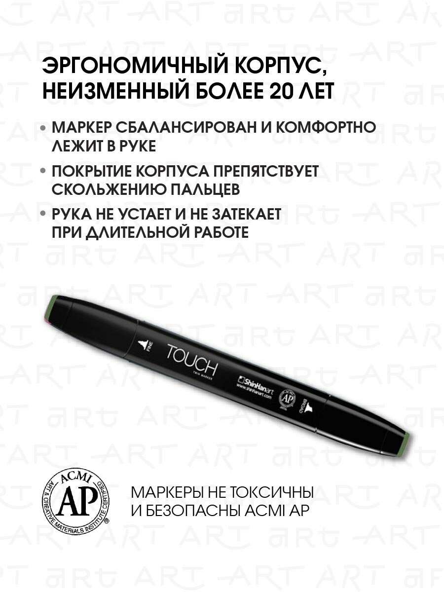 СохранитьДвусторонний заправляемый маркер ShinHan TOUCH TWIN на спиртовой основе для скетчинга, цвет: GY231 Зеленые водоросли интересное: