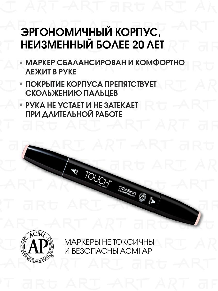 Двусторонний заправляемый маркер ShinHan TOUCH TWIN на спиртовой основе для скетчинга, цвет: RP198 Розовый нежный