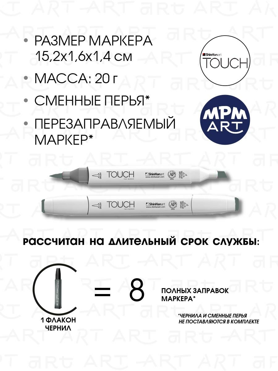 СохранитьДвусторонний заправляемый маркер ShinHan TOUCH TWIN Brush на спиртовой основе для скетчинга, цвет: GG7 Зелено-серый интересное: