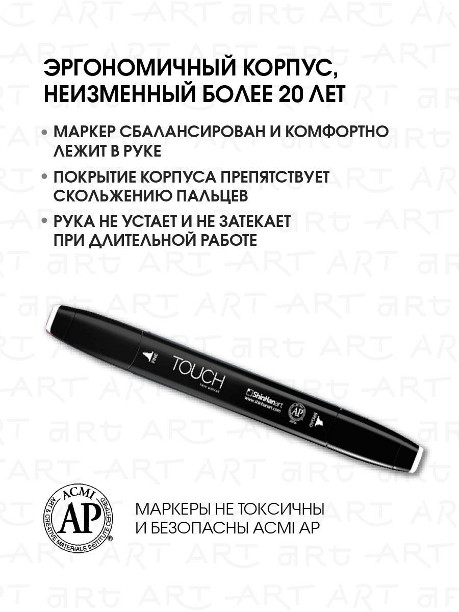 Двусторонний заправляемый маркер ShinHan TOUCH TWIN на спиртовой основе для скетчинга, цвет: RP198 Розовый нежный