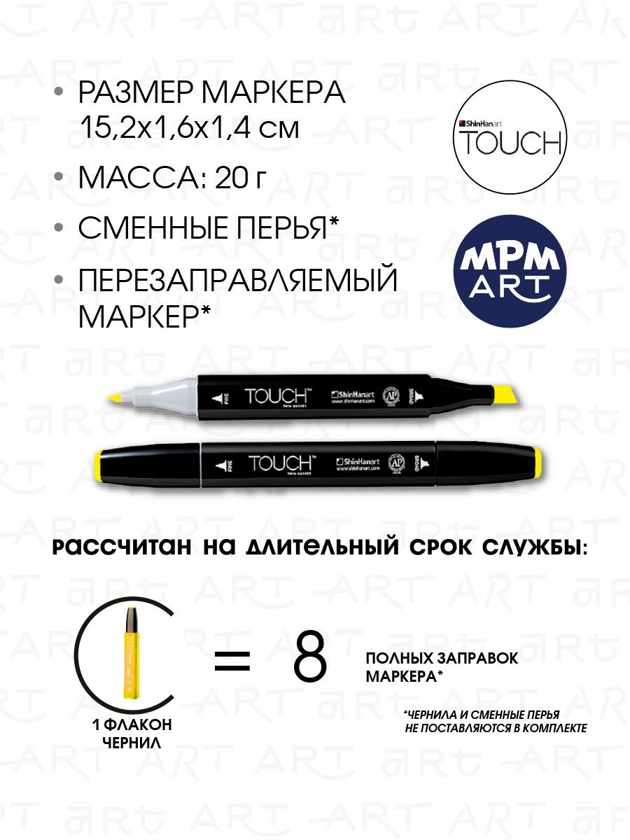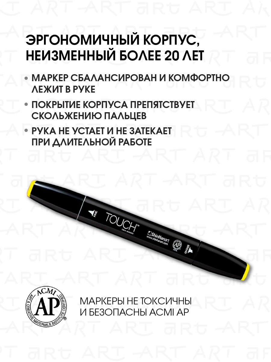 СохранитьДвусторонний заправляемый маркер ShinHan TOUCH TWIN на спиртовой основе для скетчинга, цвет: Y221 Желтый основной интересное: