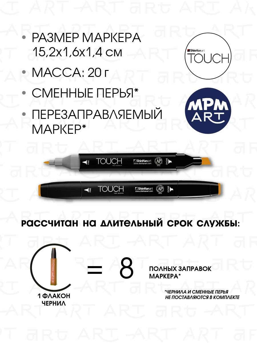 СохранитьДвусторонний заправляемый маркер ShinHan TOUCH TWIN на спиртовой основе для скетчинга, цвет: BR101 Охра желтая интересное: