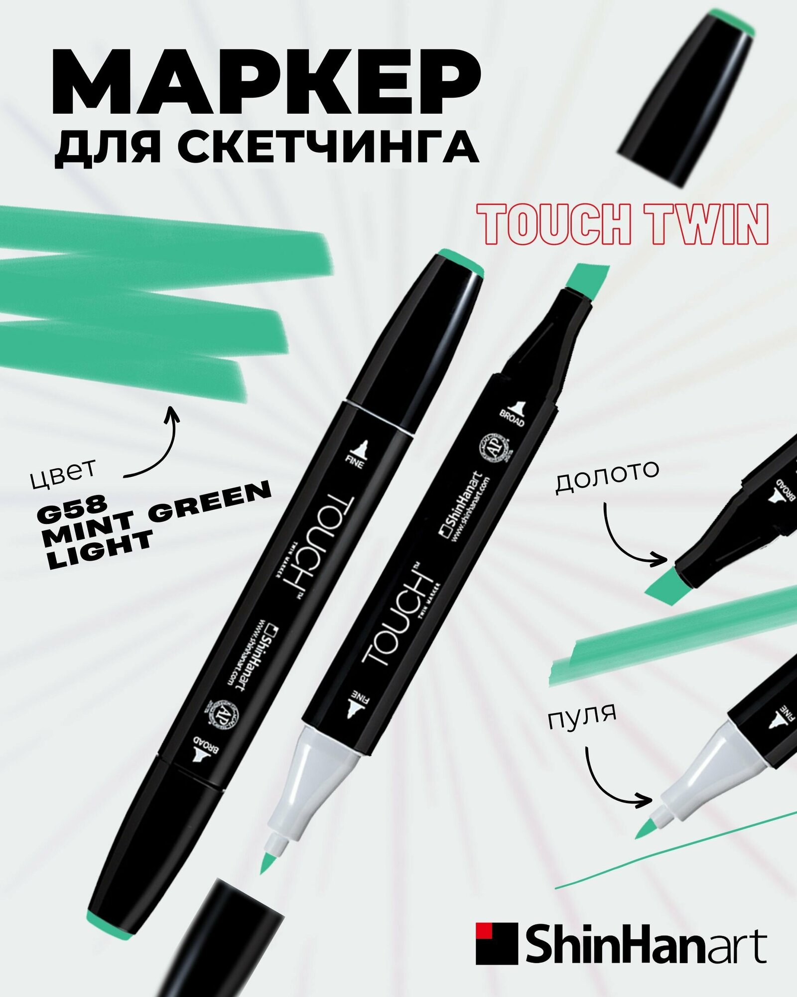 Купить Двусторонний заправляемый маркер ShinHan TOUCH TWIN на спиртовой основе для скетчинга, цвет: G58 Зеленый мятный светлый