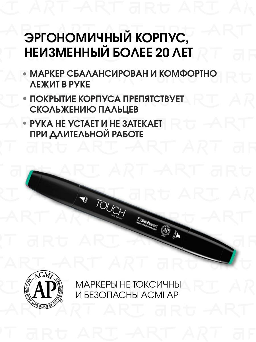 Двусторонний заправляемый маркер ShinHan TOUCH TWIN на спиртовой основе для скетчинга, цвет: BG179 Сине-зелены мятный