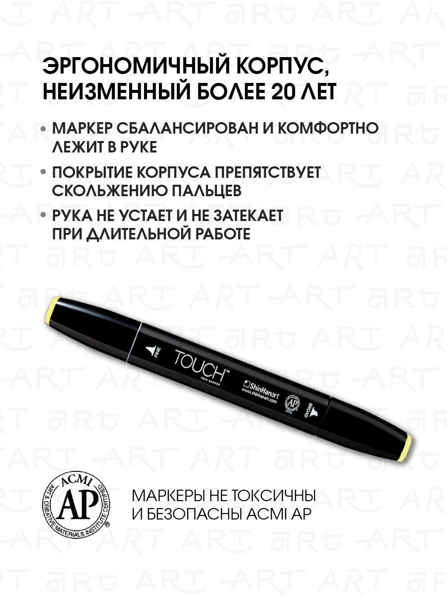 СохранитьДвусторонний заправляемый маркер ShinHan TOUCH TWIN на спиртовой основе для скетчинга, цвет: Y164 Желтый анис интересное: