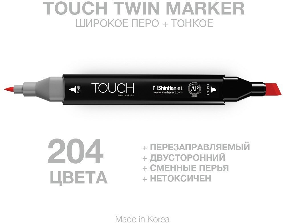 Двусторонний заправляемый маркер ShinHan TOUCH TWIN на спиртовой основе для скетчинга, цвет: R13 Красный алый