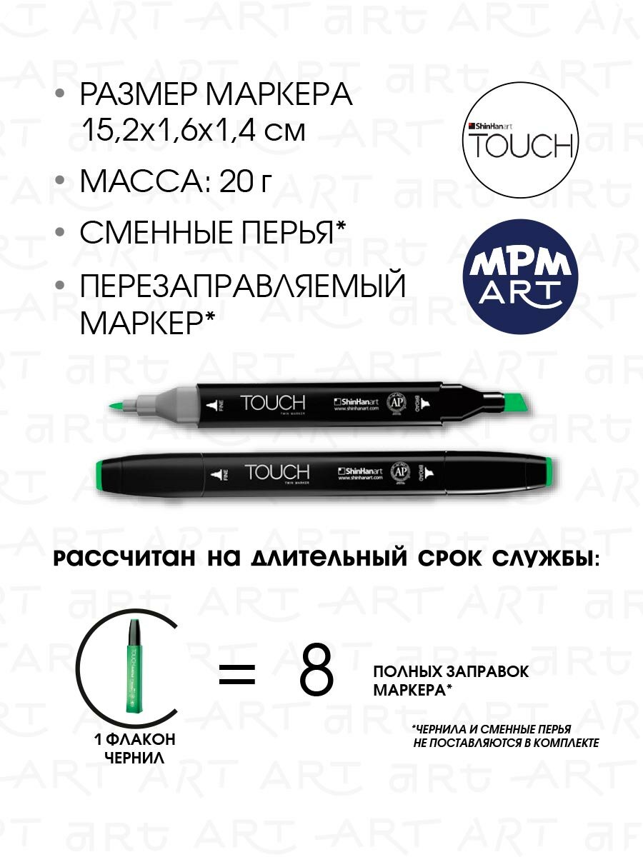 СохранитьДвусторонний заправляемый маркер ShinHan TOUCH TWIN на спиртовой основе для скетчинга, цвет: G46 Зеленый яркий интересное: