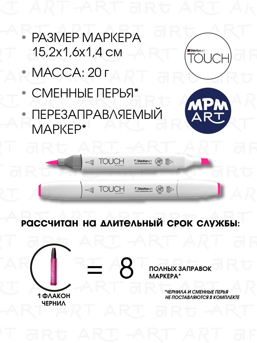 Двусторонний заправляемый маркер ShinHan TOUCH TWIN на спиртовой основе для скетчинга, цвет: RP137 Розовый средний