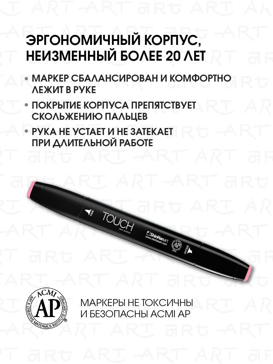 СохранитьДвусторонний заправляемый маркер ShinHan TOUCH TWIN на спиртовой основе для скетчинга, цвет: RP198 Розовый нежный интересное: