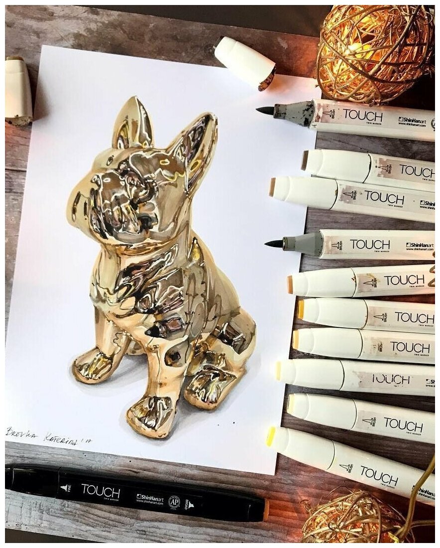 Двусторонний заправляемый маркер ShinHan TOUCH TWIN на спиртовой основе для скетчинга, цвет: Y223 Желтый соломенный