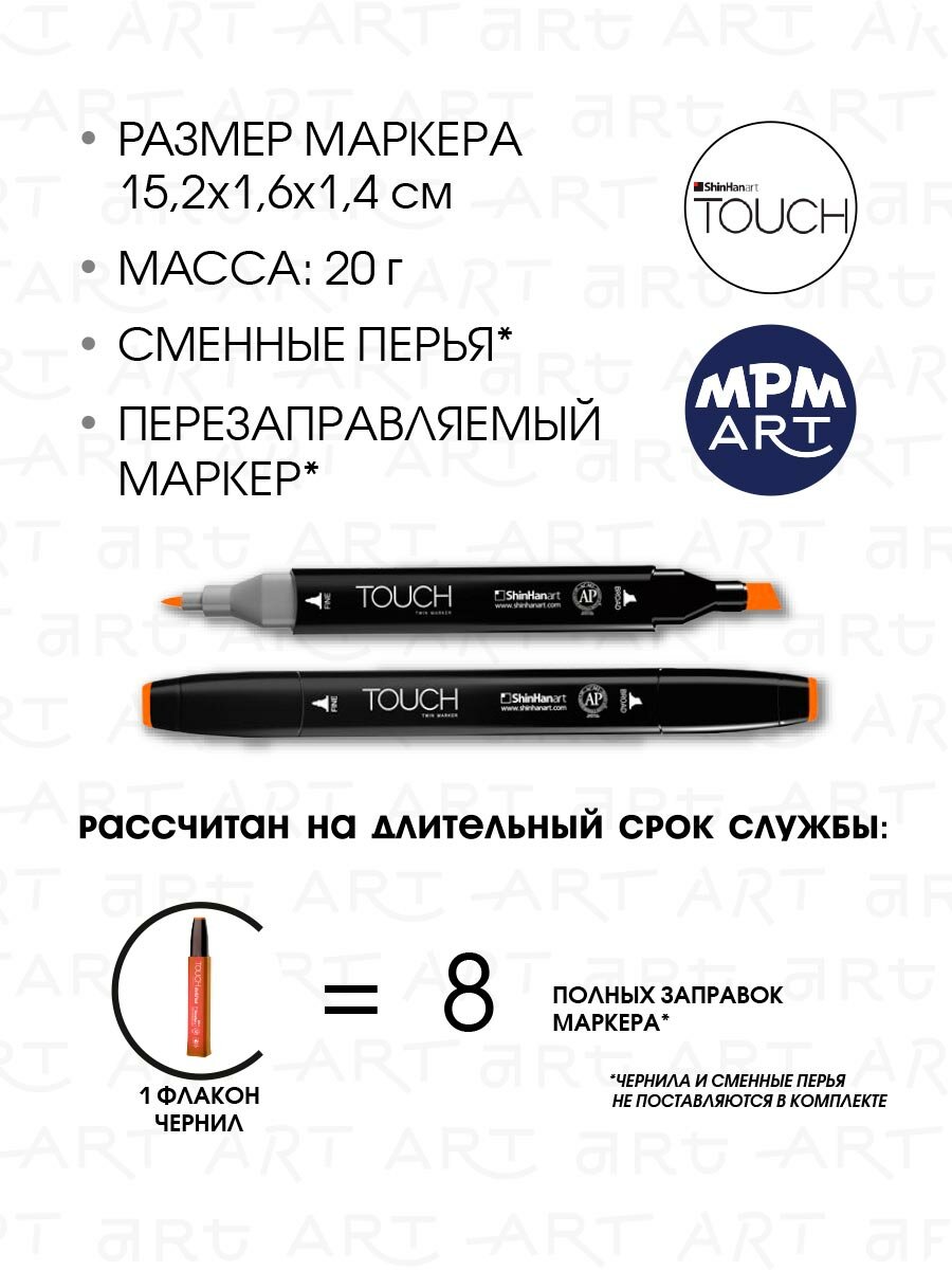 СохранитьДвусторонний заправляемый маркер ShinHan TOUCH TWIN на спиртовой основе для скетчинга, цвет: F122 Оранжевый флуоресцентный интересное: