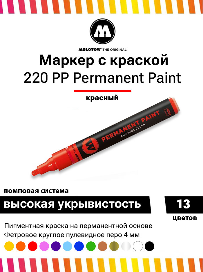 Ниже Вы можете прочитать отзывы на Маркер с краской Molotow Permanent Paint 220PP 220013 красный 4 мм универсальный, ознакомится с подробными характеристиками, посмотреть интересные обзоры и фотографии на Маркер с краской Molotow Permanent Paint 220PP 220013 красный 4 мм универсальный.