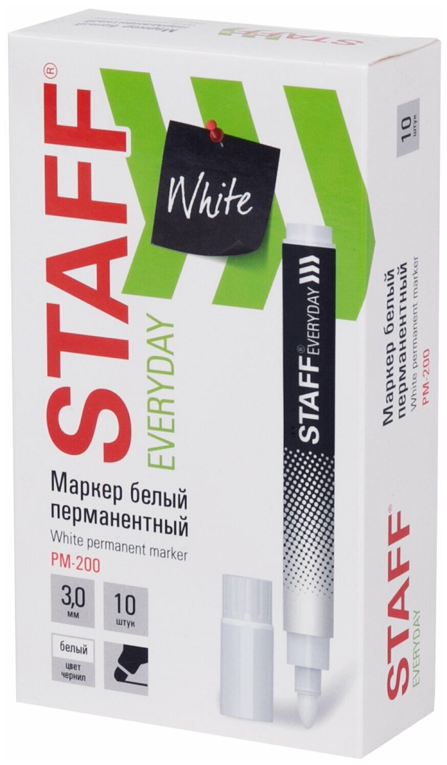 Маркер перманентный Staff Everyday PM-200 (3мм, круглый наконечник, белый) (152202), 10шт. интересное: