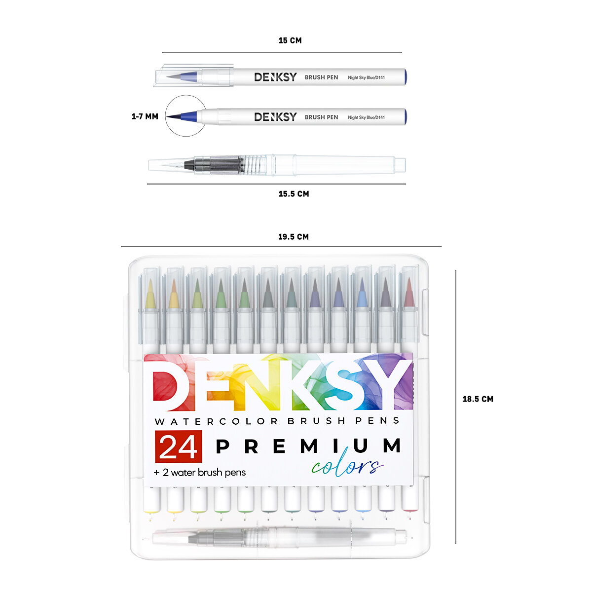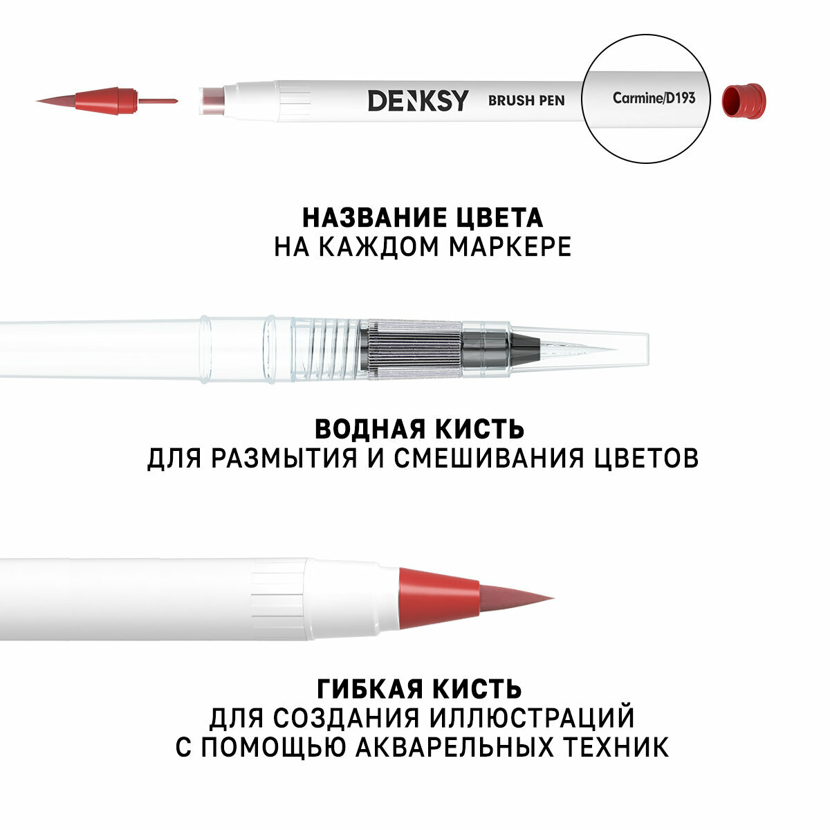 Акварельные маркеры DENKSY 12 Classic цветов в белом корпусе и 1 кисть с резервуаром