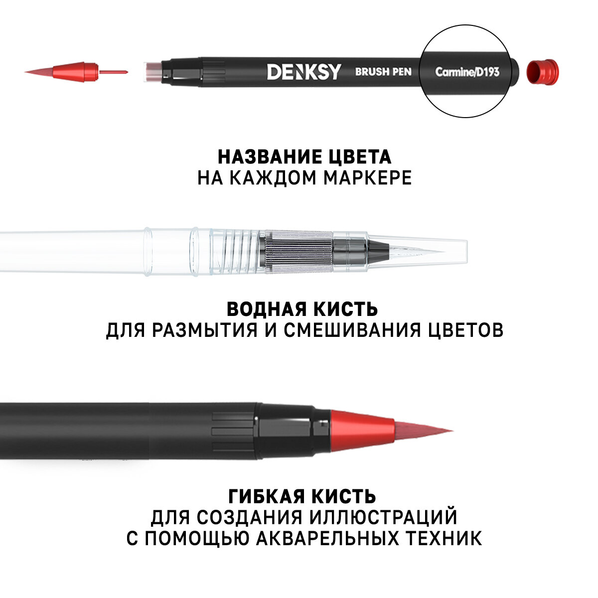 Акварельные маркеры DENKSY 48 цветов в белом корпусе корпусе и 4 кисти с резервуаром в пенале
