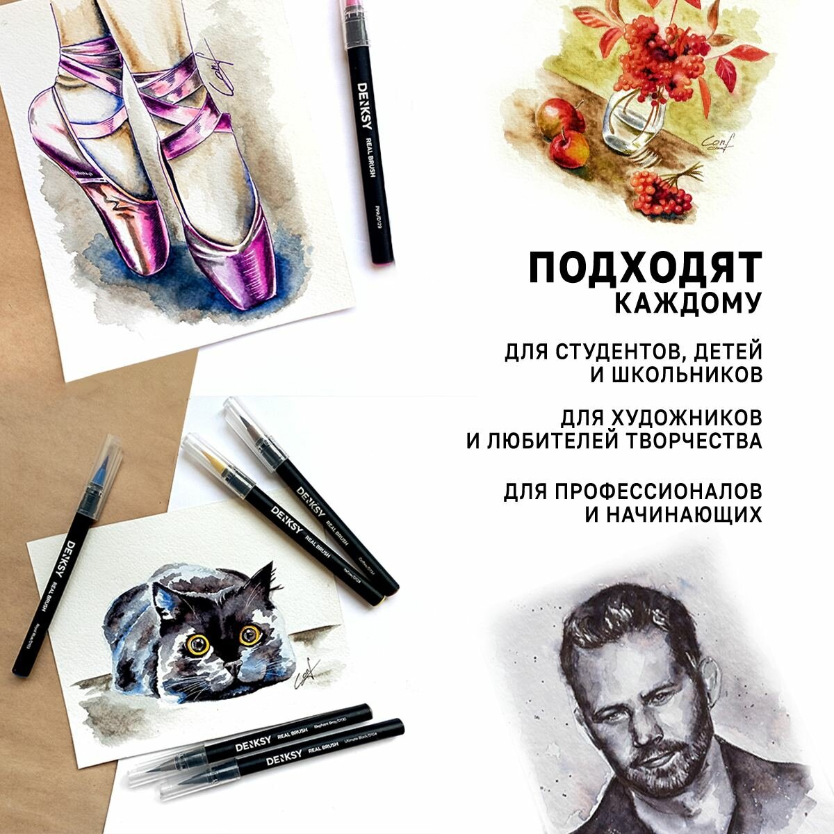 Акварельные маркеры DENKSY 12 Portrait цветов в черном корпусе и 1 кисть с резервуаром