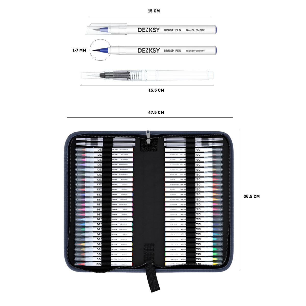 Акварельные маркеры DENKSY 48 цветов в черном корпусе корпусе и 4 кисти с резервуаром в пенале