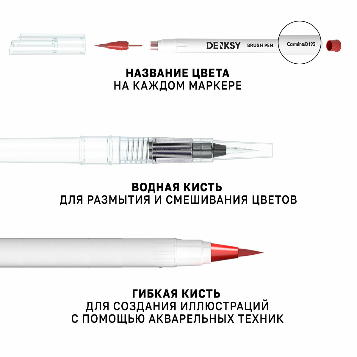 СохранитьАкварельные маркеры DENKSY 48 цветов в белом корпусе корпусе и 4 кисти с резервуаром в пенале интересное: