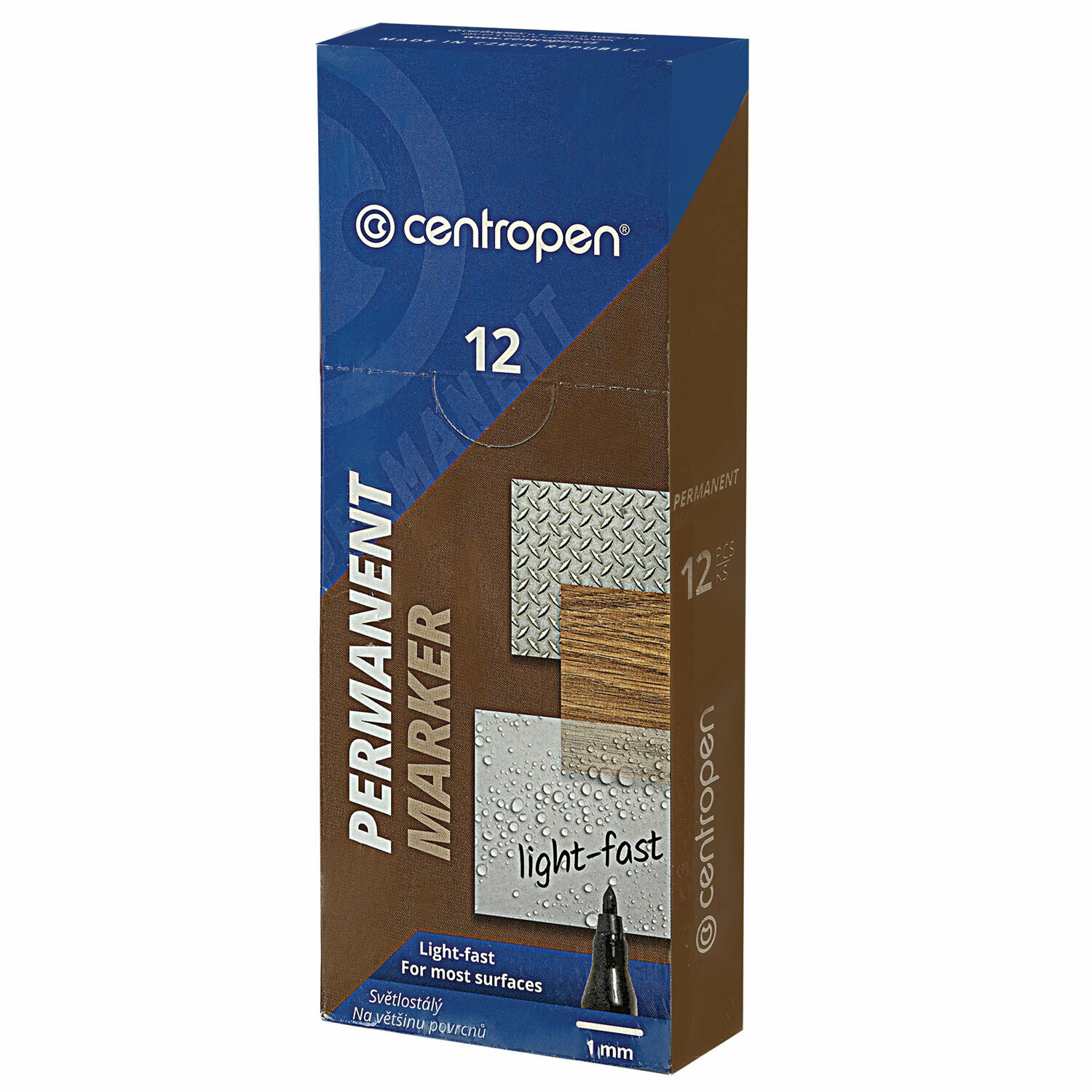 Купить Маркеры перманентные (нестираемые) для рисования и письма Centropen 2536, Черные, Комплект 12 Штук, 1 мм, 880594