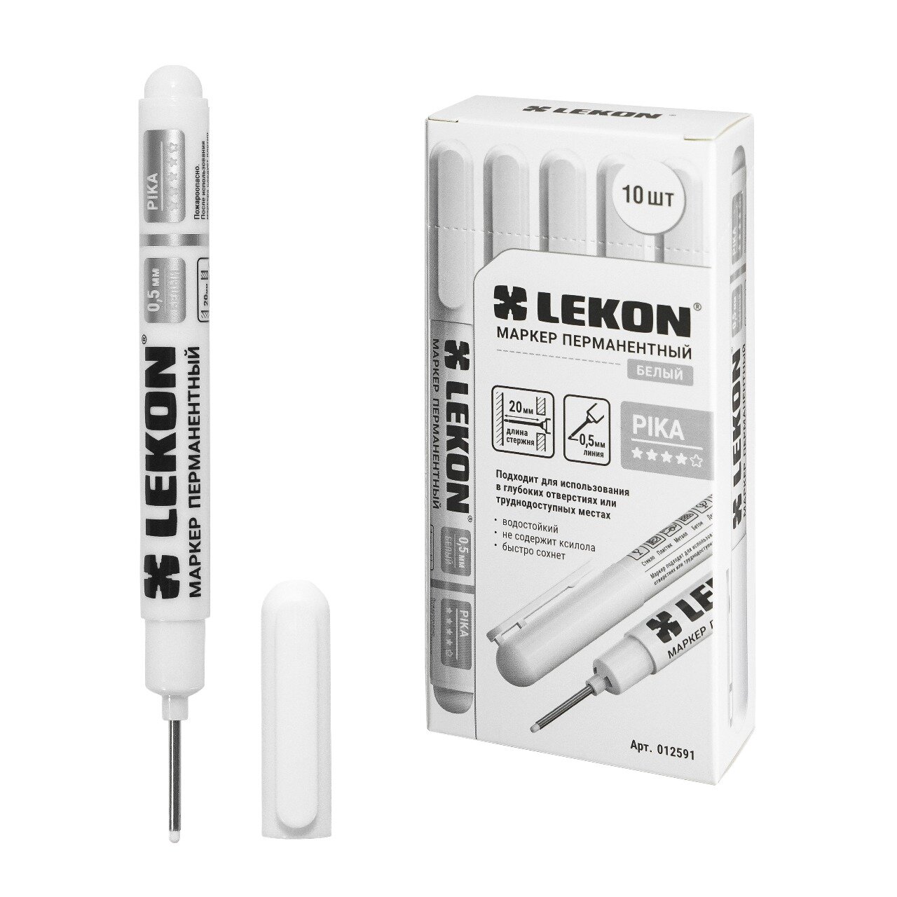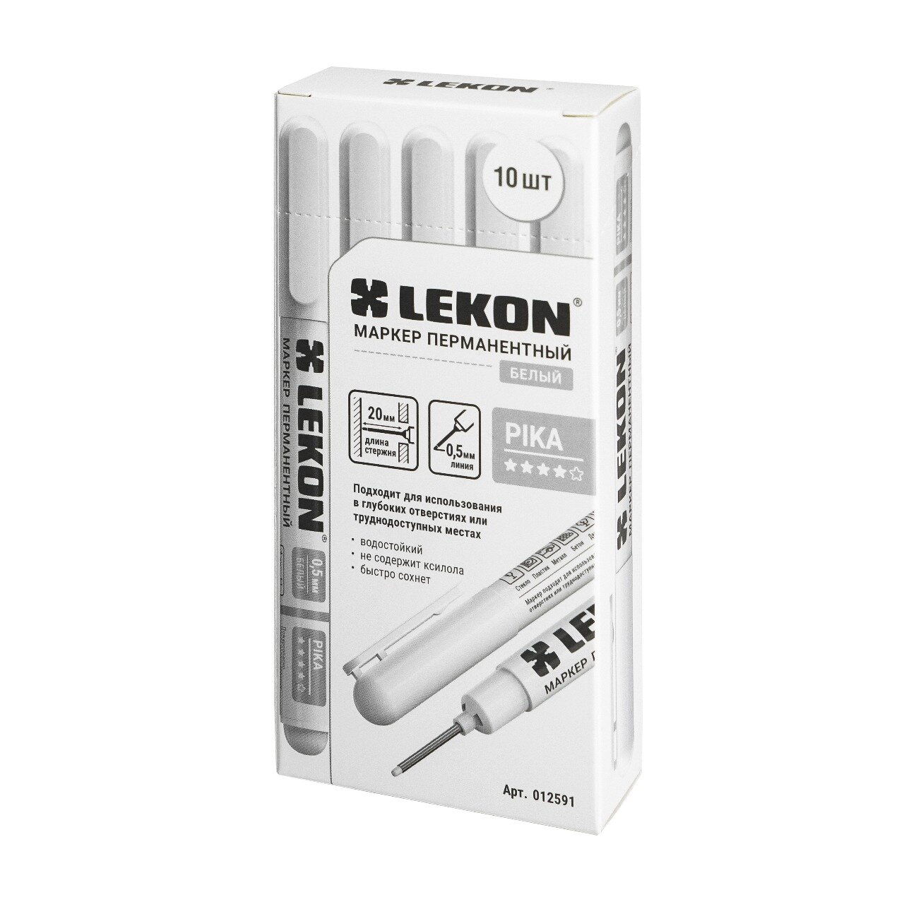 Купить Маркер строительный (10шт) LEKON с удлинённым наконечником спиртовой белый разметочный перманентный для труднодоступных мест