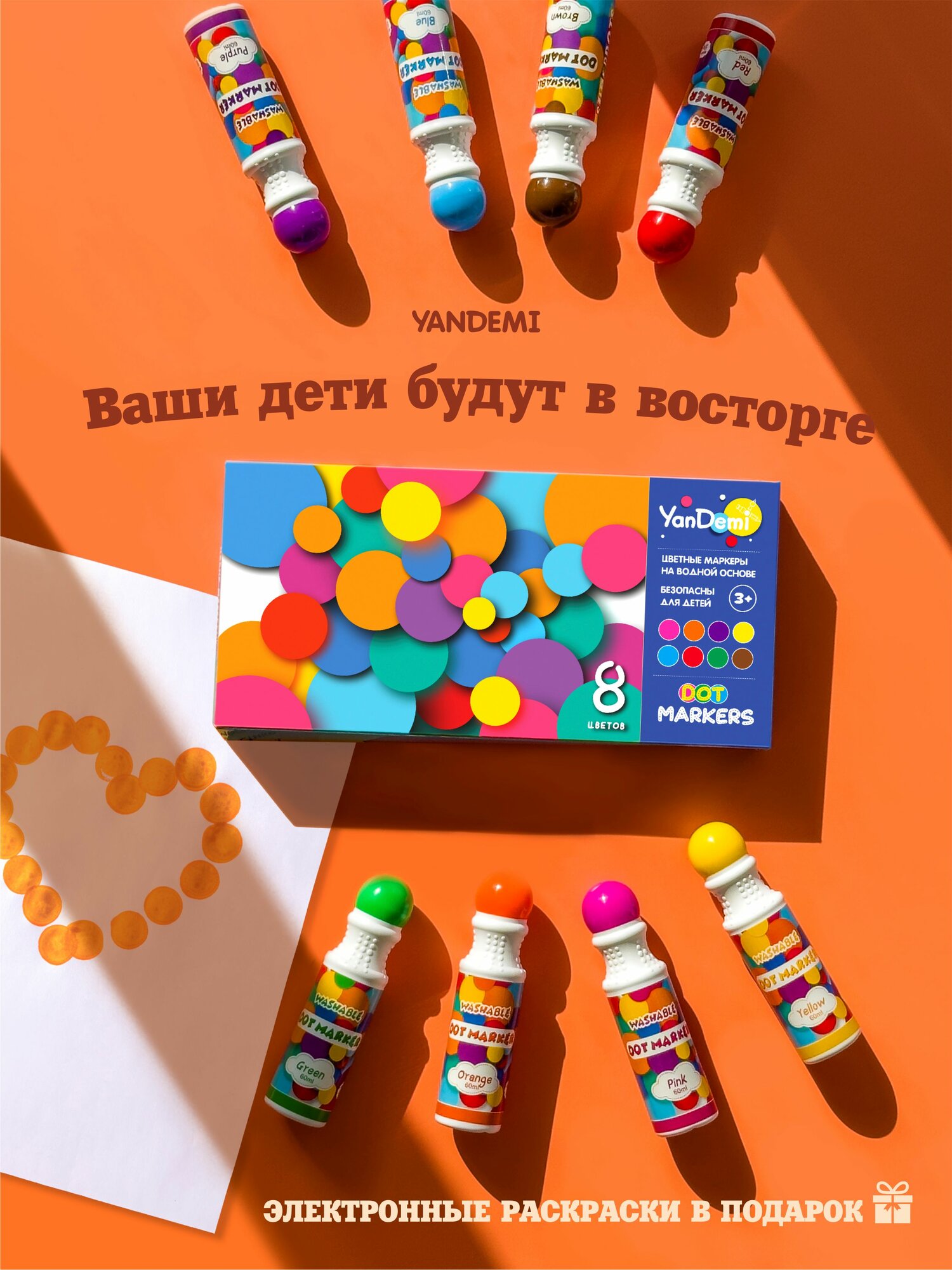 Ниже Вы можете прочитать отзывы на YANDEMI / Большие точечные маркеры для рисования набор, фломастеры для малышей 8шт, развивающие игрушки от года для девочек и мальчиков, ознакомится с подробными характеристиками, посмотреть интересные обзоры и фотографии на YANDEMI / Большие точечные маркеры для рисования набор, фломастеры для малышей 8шт, развивающие игрушки от года для девочек и мальчиков.