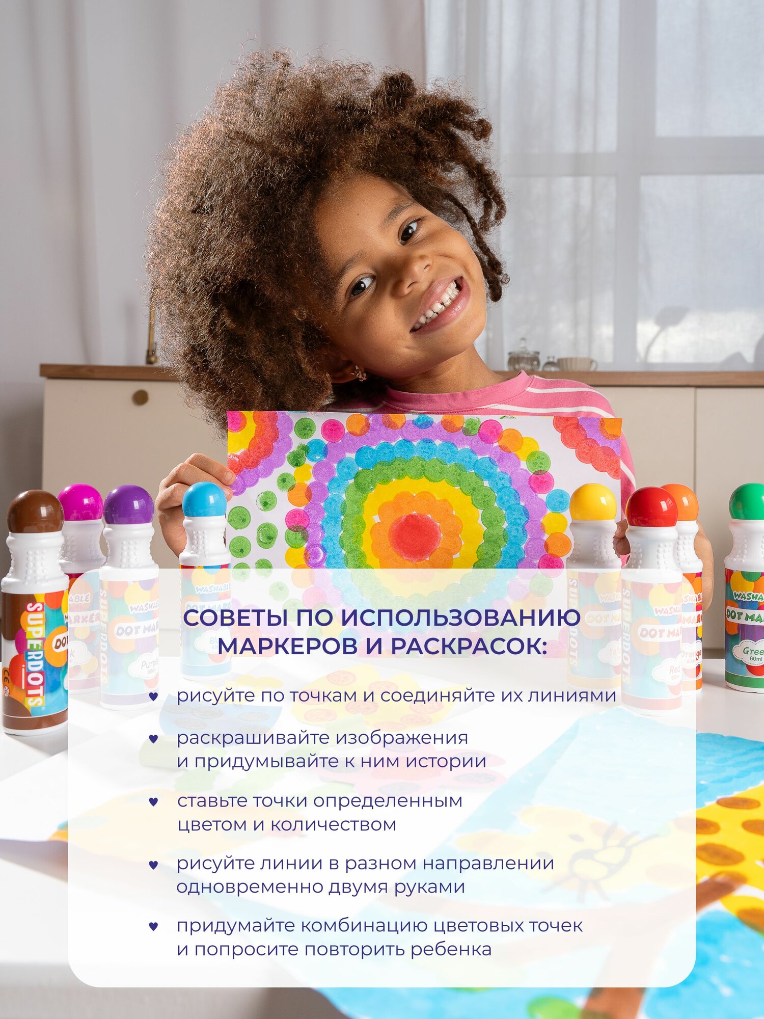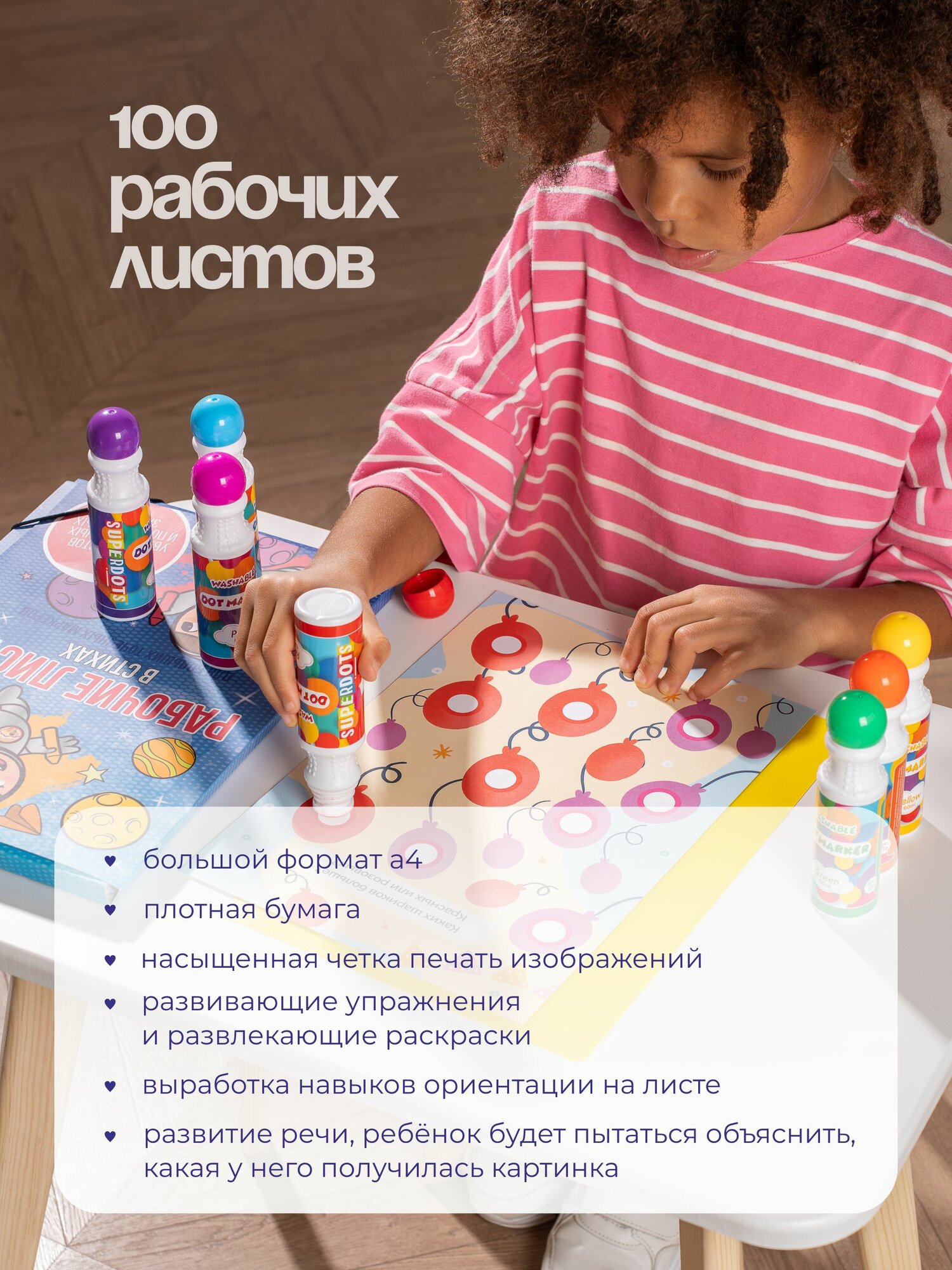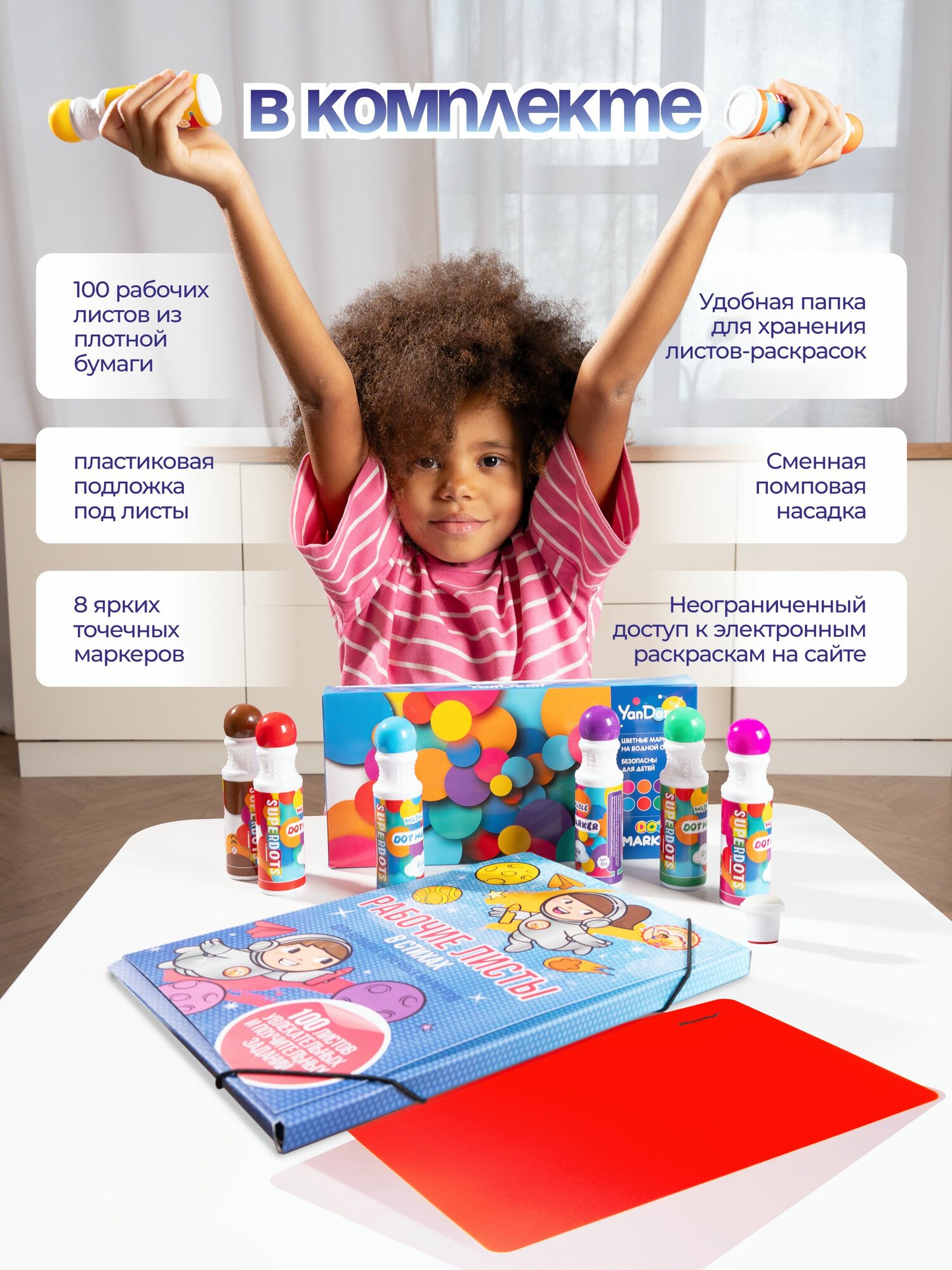 Купить YANDEMI / Большая раскраска 100 листов с набором точечных маркеров 8шт. / Подарочный набор для детей