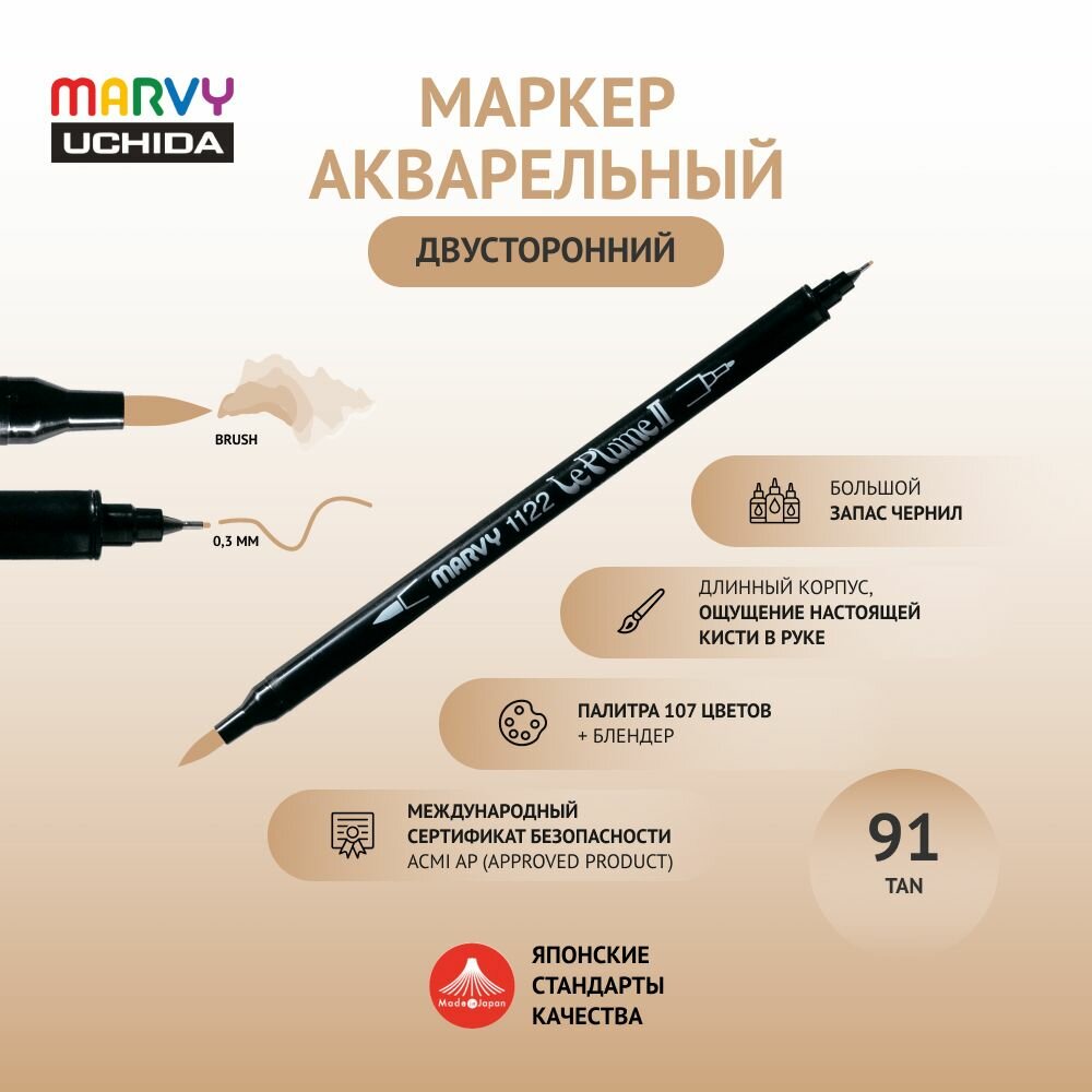 Купить Маркер Marvy Uchida для скетчинга акварельный двусторонний (кисть/капиллярная ручка 0.3мм) цвет загара MAR1122/91