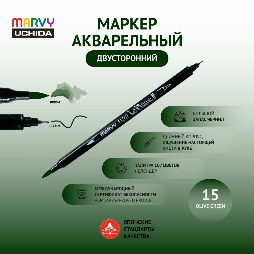 Ниже Вы можете прочитать отзывы на Маркер Marvy Uchida для скетчинга акварельный двусторонний (кисть/капиллярная ручка 0.3мм) оливково-зеленый MAR1122/15, ознакомится с подробными характеристиками, посмотреть интересные обзоры и фотографии на Маркер Marvy Uchida для скетчинга акварельный двусторонний (кисть/капиллярная ручка 0.3мм) оливково-зеленый MAR1122/15.
