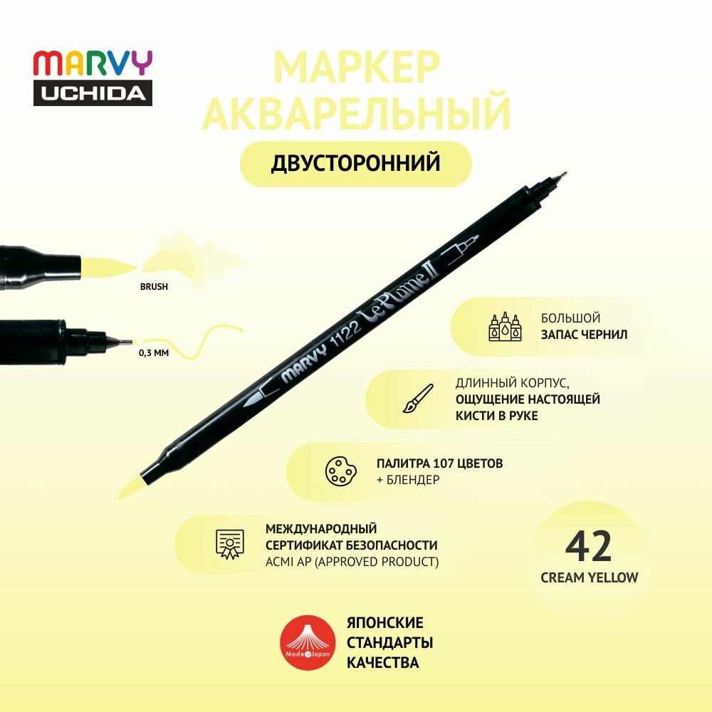 Купить Маркер Marvy Uchida для скетчинга акварельный двусторонний (кисть/капиллярная ручка 0.3мм) желто-кремовый MAR1122/42