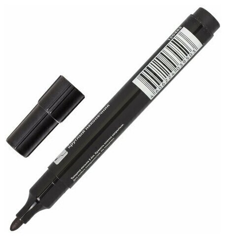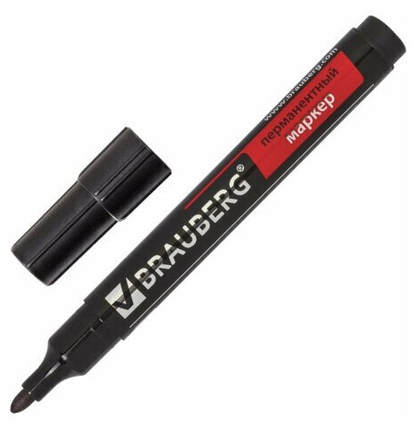 Маркер перманентный Brauberg, нестираемый, "Contract", без клипа, круглый наконечник 3 мм, черный, 1 шт (150465)
