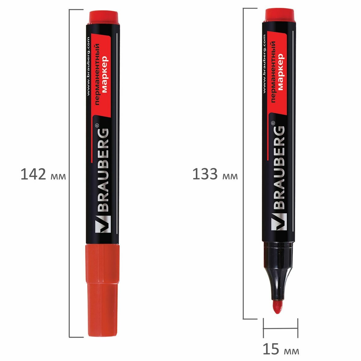 Маркер перманентный BRAUBERG "Contract", красный, круглый наконечник, 3 мм, 150467