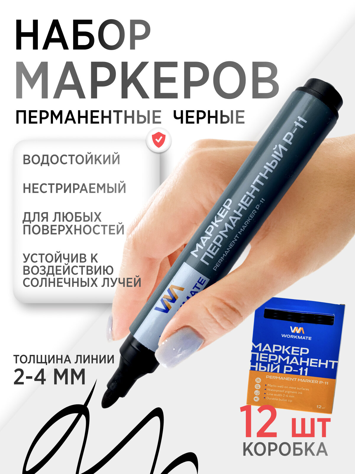Купить Маркер перманентный черный строительный WORKMATE p-11 пулевидный 12шт. 2,5-3,5 мм